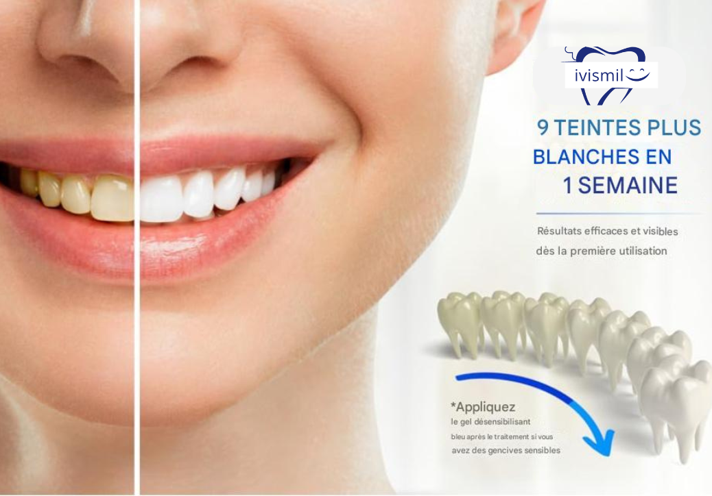Obtenez des dents plus blanches de 9 nuances en seulement 1 semaine - Des résultats visibles auxquels vous pouvez faire confiance
