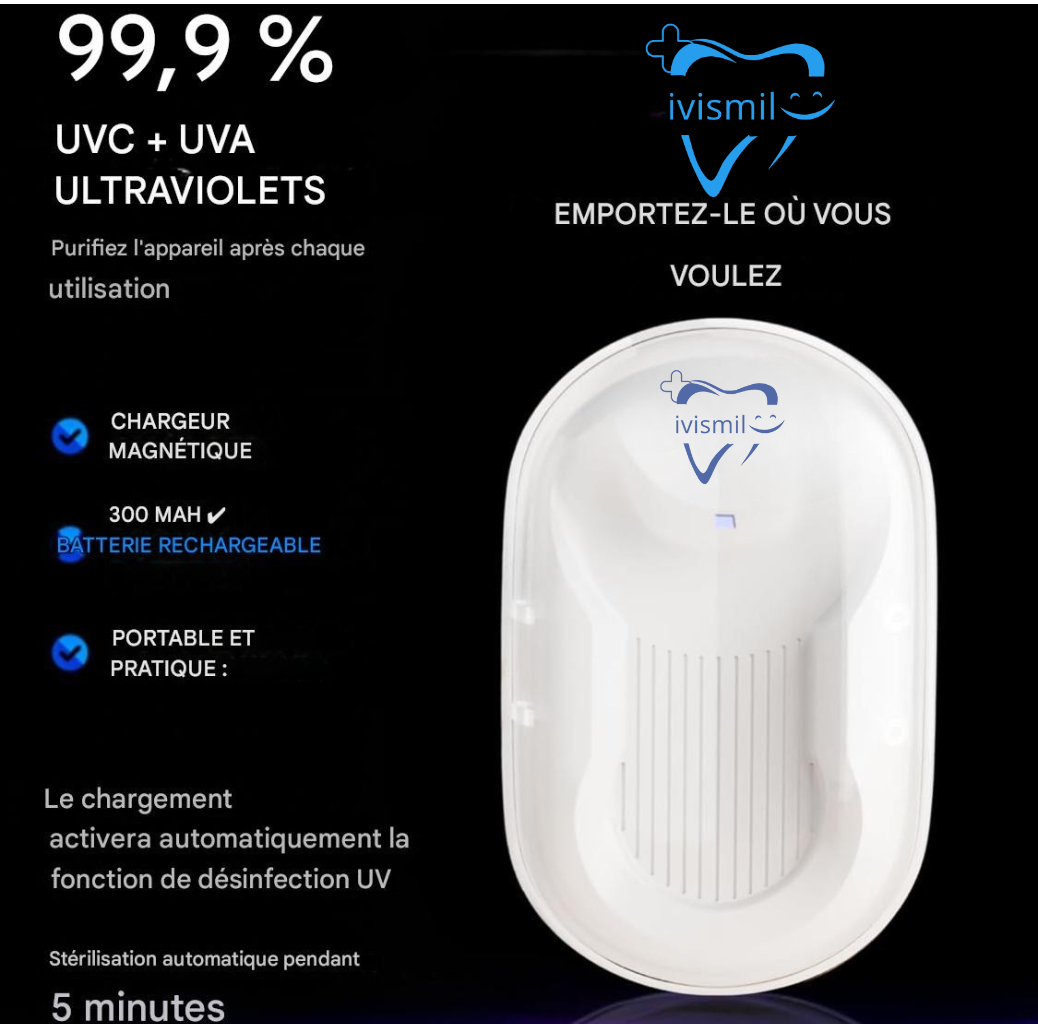 • Purification de la lumière UV (99,9 %) : Garde votre appareil propre et purifié après chaque utilisation.