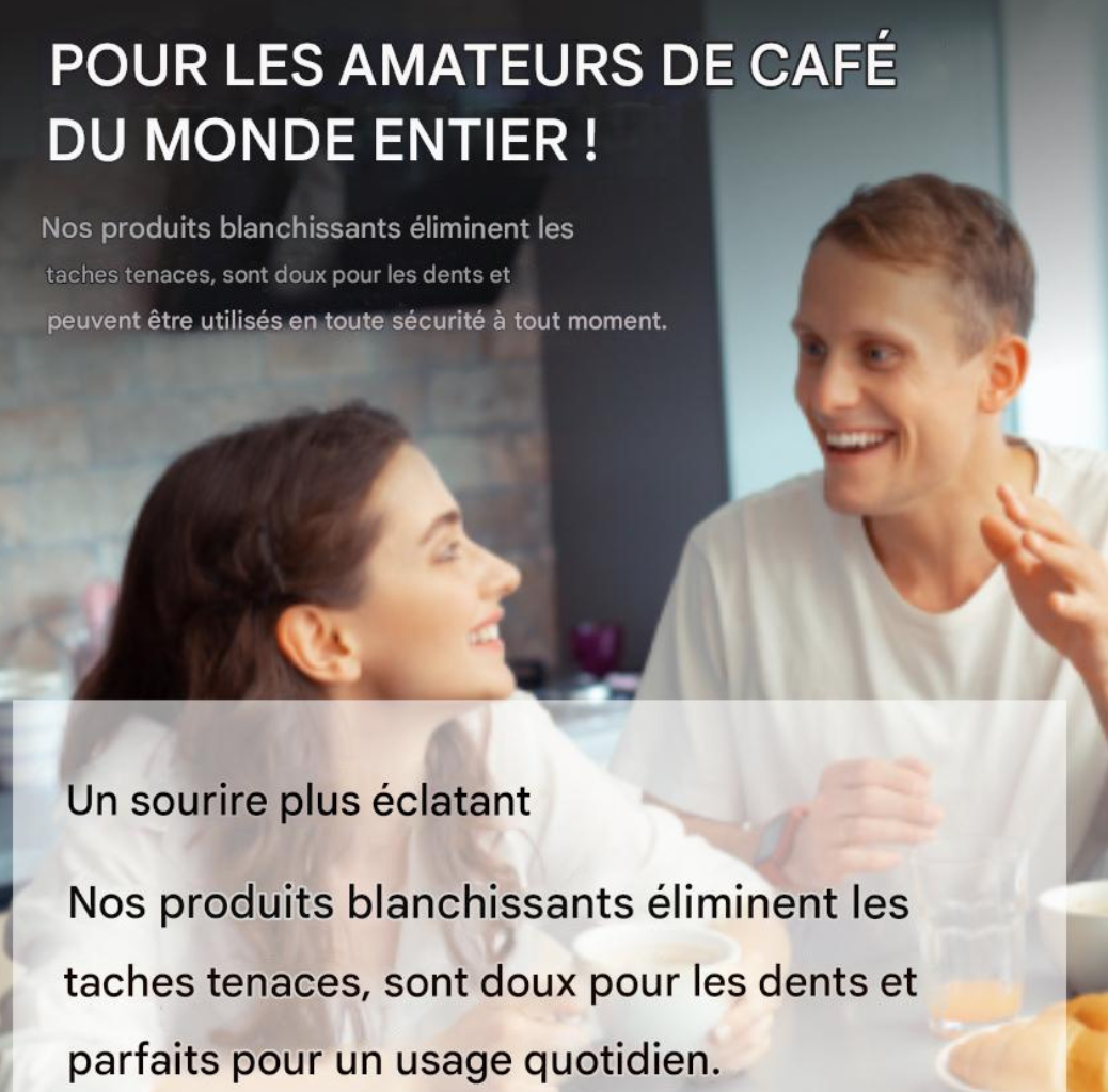 • Les dents tachées affectent-elles votre confiance en vous ? Retrouvez votre sourire avec des résultats visibles dès la première semaine.